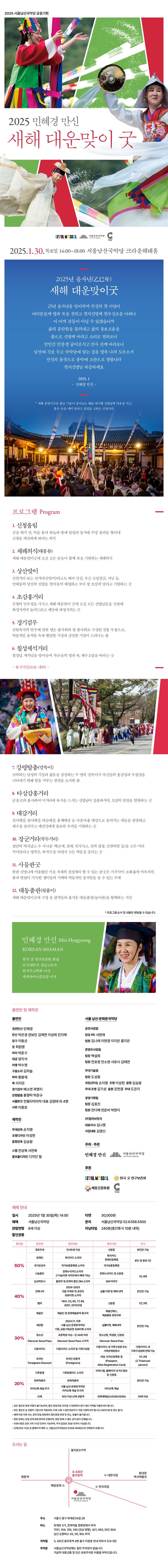 - 서울남산국악당은 휠체어석이 4석 있습니다. 휠체어 이용 혹은 거동이 불편하신 관객께서는 서울남산국악당(02-6358-5500)을 통해 문의 부탁드립니다.