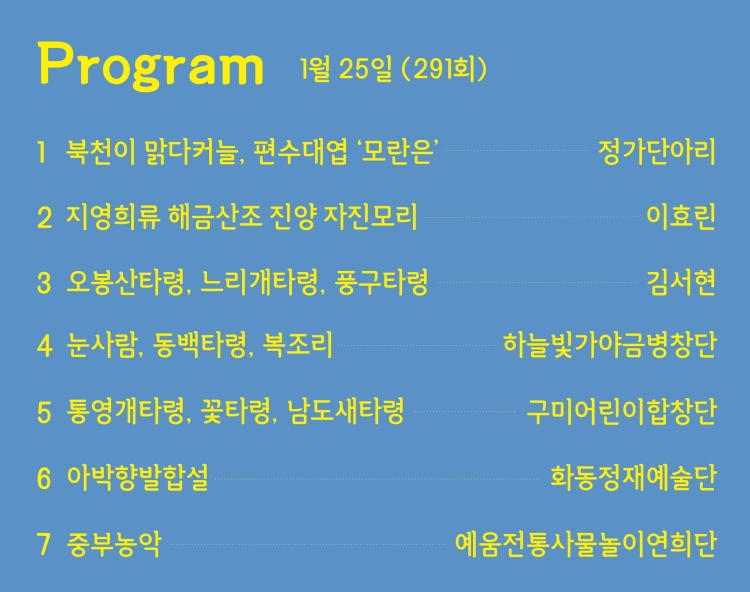 - 서울남산국악당에는 별도의 주차장이 마련되어 있지 않습니다. 가급적 대중교통 이용 부탁드리며, 주차 시 인근 유료 주차장을 이용해주시기 바랍니다(서울남산국악당 인근 주차안내).- 서울남산국악당은 휠체어석이 4석 있습니다. 휠체어 이용 혹은 거동이 불편하신 관객께서는 서울남산국악당(02-6358-5500)을 통해 문의 부탁드립니다.